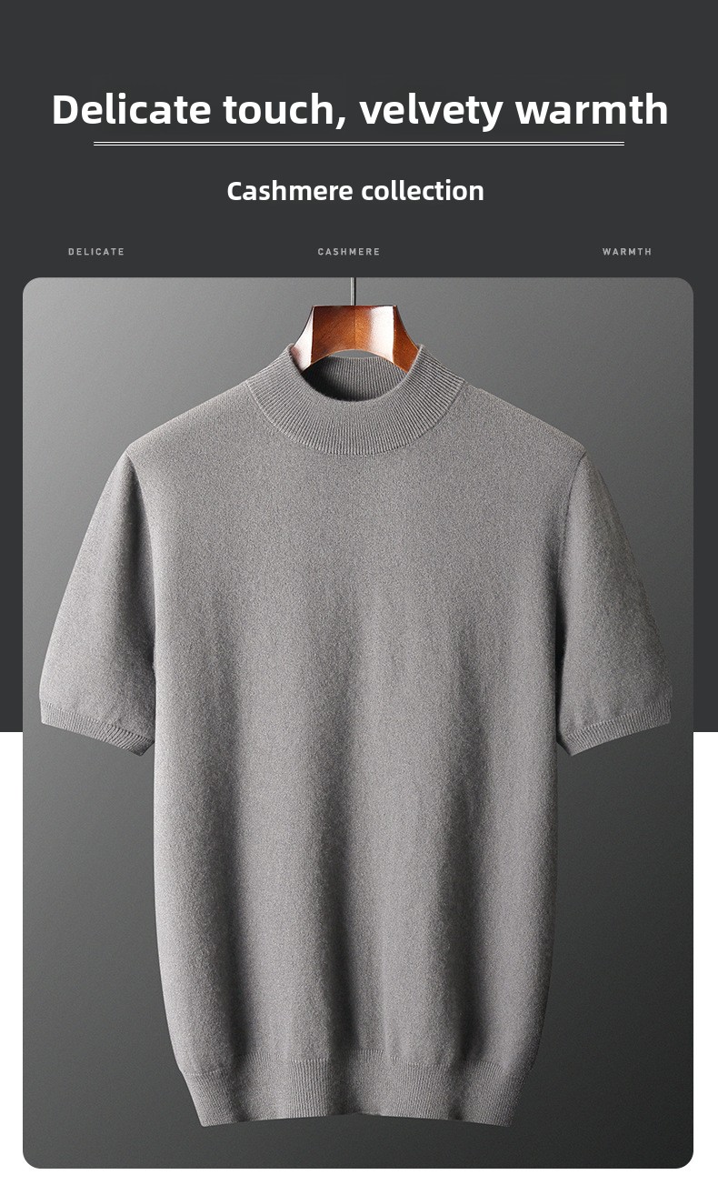 Mens Cashmere Blend Short Sleeve Knit Sweater